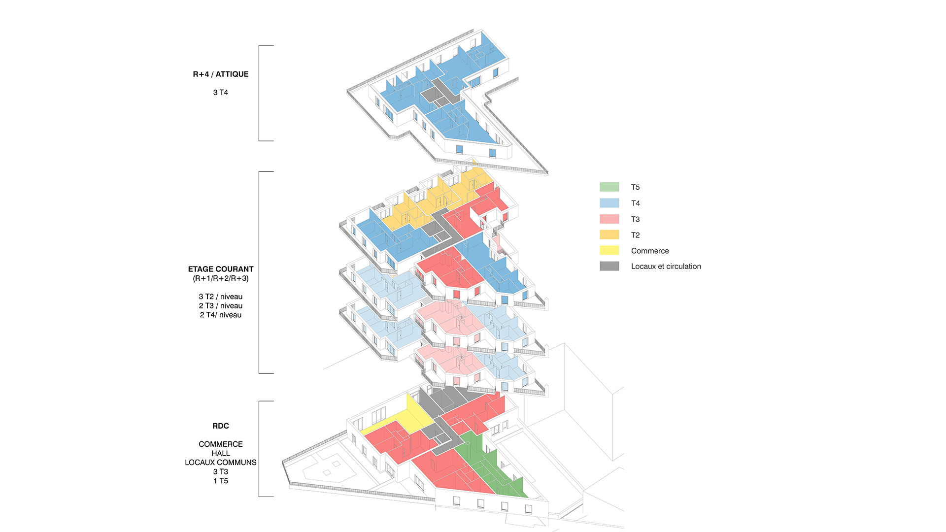 – Amélioration du confort urbain : le recul de l’immeuble par rapport au carrefour animé offre une respiration visuelle et sonore pour les habitants.