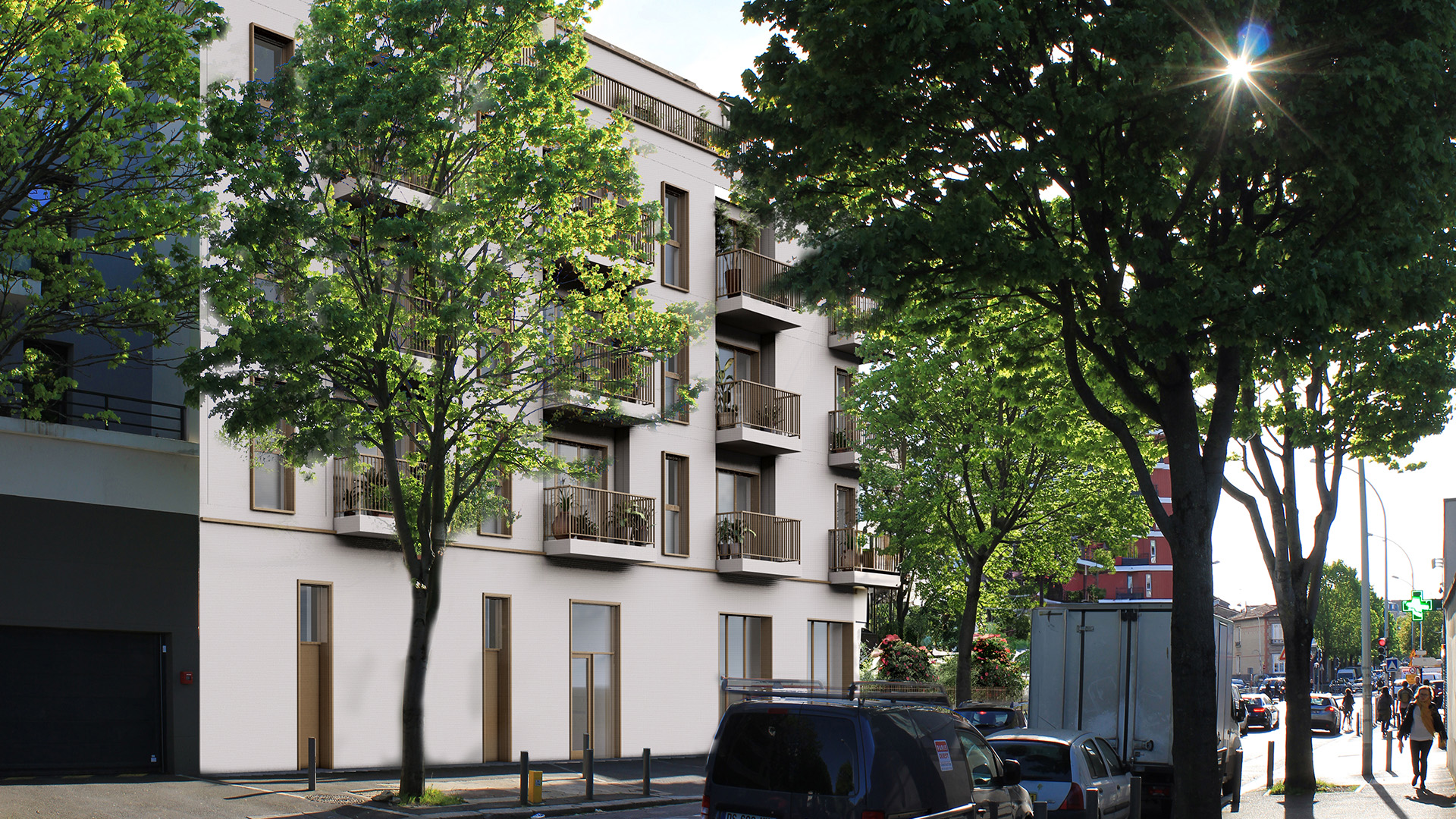 Ce projet prévoit la construction d’un immeuble de 28 logements collectifs et d’un commerce en rez-de-chaussée, situé à l’angle de l’Avenue Pasteur et de la rue François Mitterrand à Bagnolet. L’implantation vise à prolonger l’alignement existant tout en libérant l’angle des deux rues, créant ainsi un espace non bâti au carrefour.