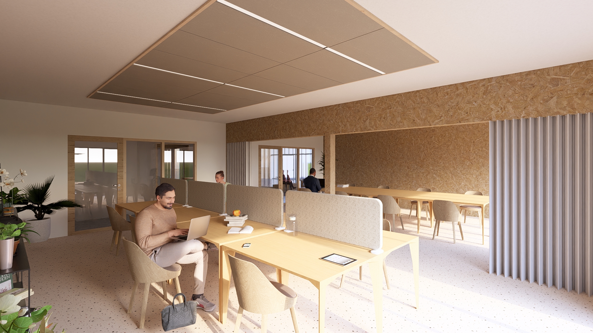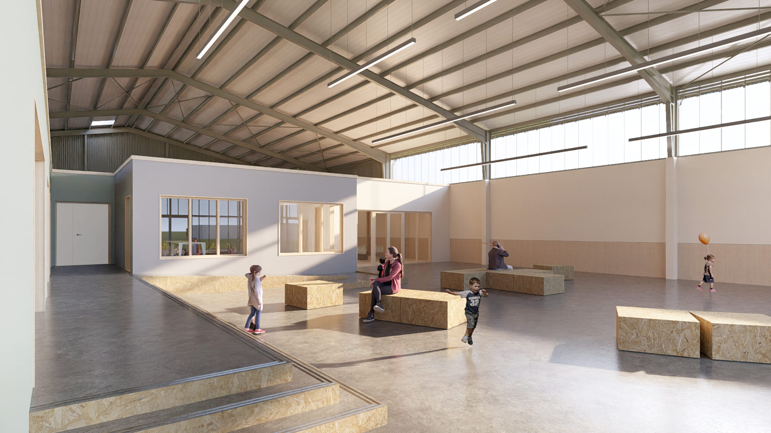Les espaces seront organisés en modules en bois, garantissant flexibilité et respect des normes environnementales RE2020. Fabriqués en atelier, ces modules réduiront les nuisances et les déchets sur site.