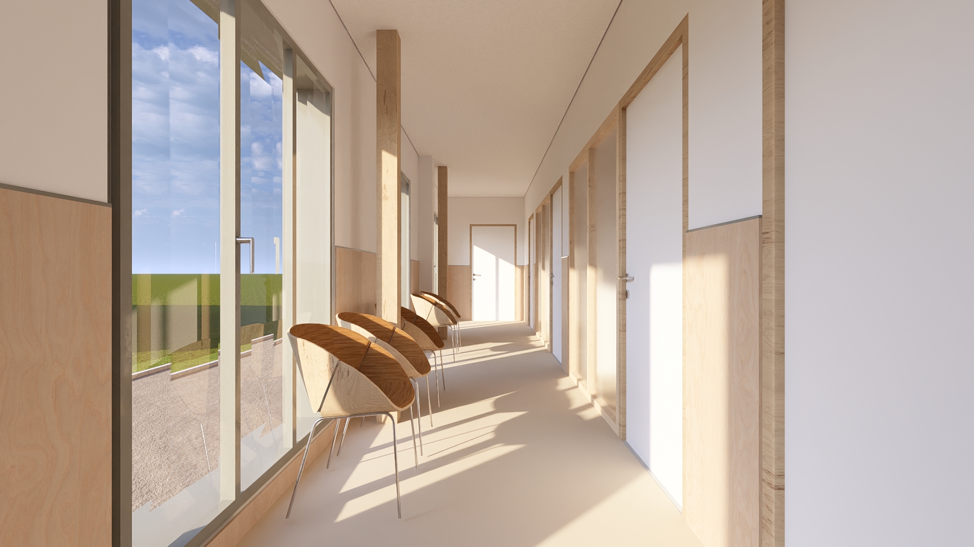 La mairie sera relocalisée dans le gymnase, libérant ses locaux actuels pour l’agrandissement de l’école. Le bâtiment, repensé pour refléter une ouverture architecturale, intégrera une nouvelle façade translucide lumineuse et ventilée, avec un parvis partiellement couvert favorisant l’accueil.